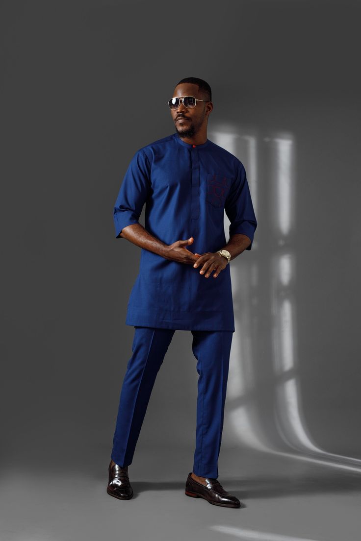 Embroidered royal blue kaftan with a clean finish.